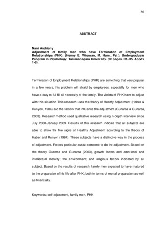 Termination of Employment Relationships (PHK) are something that very popular in a few years, this problem will afraid by employees, especially for men who have a duty to full fill all necessity of the family. The victims of PHK have to adjust with this situation. This research uses the theory of Healthy Adjustment (Haber & Runyon, 1984) and the factors that influence the adjustment (Gunarsa & Gunarsa, 2003). Research method used qualitative research using in-depth interview since July 2008-January 2009. Results of this research indicate that all subjects are able to show the five signs of Healthy Adjustment according to the theory of Haber and Runyon (1984). These subjects have a distinctive way in the process of adjustment. Factors particular assist someone to do the adjustment. Based on the theory Gunarsa and Gunarsa (2003), growth factors and emotional and intellectual maturity; the environment; and religious factors indicated by all subject. Based on the results of research, family men expected to have matured to the preparation of his life after PHK, both in terms of mental preparation as well as financially.