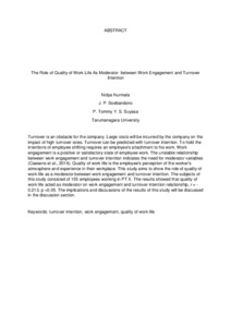 | Uncontrolled Keywords: | turnover intention, work engagement, quality of work life |