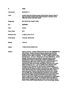 DONNY FREDI, BUTAR-BUTAR (2011) Analisis Penjokian Berpenumpang Tiga Dikaitkan Dengan Pasal 27 Ayat (2) Undang-Undang Dasar Negara Republik Indonesia Tahun 1945/ oleh Donny Fredi Butar-Butar. Skripsi thesis, UNIVERSITAS TARUMANAGARA.