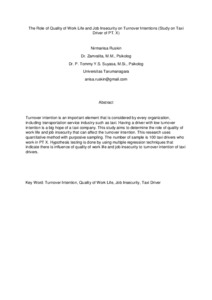 Ruskin, Nirmanisa (2017) The Role of Quality of Work Life and Job Insecurity on Turnover Intentions (Study on Taxi Driver of PT. X). Masters thesis, Universitas Tarumanagara.