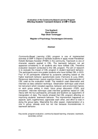 Sugiharti, Tina (2017) Evaluasi program community-based learning yang berdampak pada perilaku kerjasama siswa SMP X Depok. Masters thesis, Universitas Tarumanagara.