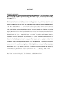 Emotional intelligence is an intelligence which including personal skill, a skill which determine how people manage their self and social skill, a skill which determine how people manage a relation with others. Job satisfaction is a common behavior to the job based on intrinsic element (element from inside people) and extrinsic element (element from outer people). An employee who has a higher job satisfaction will show a positive behavior to their job and an employee who has a lower job satisfaction will show a negative behavior to their job. This positive and negative behavior depend on emotional intelligence. Job performance is a success level that achieved by people to know how far that the performance is measured. This research using a qualitative method with correlation model. The people of this research is 63 car sales forces. Correlation quantification shows that there is a positive and significant relationship between emotional intelligence and job performance with r = 0,67 and p = 0,00 < 0,01. Correlation quantification shows that there is no relation between job satisfaction and j ob performance with r = -0,13 and p = 0,33 > 0,05.