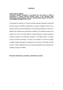 Yunita Tjendra, Vera (2010) Hubungan antara persepsi mengenail seks pranikah dengan kecemasan mengidap AIDS pada remaja madya di Jakarta. Skripsi thesis, Universitas Tarumanagara.
