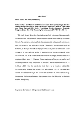 Decha Dwi Putri, Maha (2010) Hubungan self esteem dan delikuensi pada remaja laki-laki (studi pada siswa SMU di Jakarta BArat). Skripsi thesis, Universitas Tarumanagara.