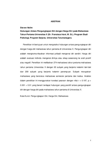Halim, Steven (2011) Hubungan antar pengungkapan diri dengan harga diri pada mahasiswa tahun pertama Universitas X. Skripsi thesis, universitas Tarumanagara.