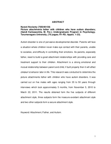 Novianty, Nurani (2011) Gambaran attachment ayah dengan anak yang memiliki gangguan autism. Skripsi thesis, Universitas Tarumanagara.