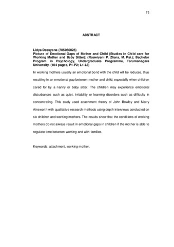 Dessyana, Lidya (2011) Gambaran kesenjangan emosional ibu dan anak. (Studi pada anak yang diasuh baby sitter dan ibu bekerja). Skripsi thesis, Universitas Tarumanagara.