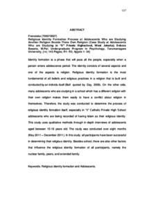 Fransiska, Fransiska (2012) Proses pembentukan identitas agama pada remaja yang mempelajari agama lain selain agama yang dianut (Studi kasus pada remaja yang bersekolah di sekolah menengah atas swasta Katolik “X”, Jakarta Barat. Skripsi thesis, Universitas Tarumanagara.