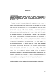 Reading interest in Indonesia today can be regarded as a low interest in reading when compared with other Asian countries such as Japan, and countries in the west. This can happen occur due to culture of Indonesia do not get people to read books every day. In the process of reading, a person also requires an ability to understand the literature they read in order to obtain useful information for themselves or others. In this case, a student is required to get a good grade point average, for the fulfillment of academic requirements and requirements to enter the world of work. Thus, to achieve good performance, it takes an interest in reading and understanding of the reading is read. In this study, subjects who are involved amounted to 170 persons, and five of them were disqualified because they do not qualify. The results of the correlation between reading interest with academic achievement has a value of r = 0.05, p> 0.05, and it means there is no relationship between reading interest with academic achievement. The results of the correlation between reading comprehension with academic achievement has a value of r = 0.19, p <0.05, and it means there is a relationship between reading comprehension with academic achievement.