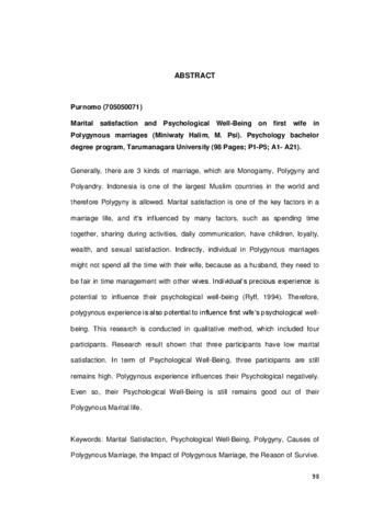 Purnomo, Purnomo (2012) Kepuasan pernikahan dan psychological well-being istri pertama pada pernikahan poligini. Skripsi thesis, Universitas Tarumanagara.