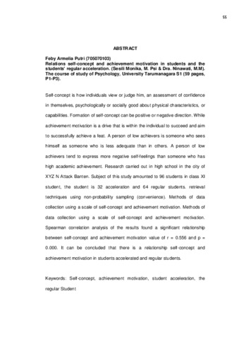 Putri, Feby Armelia (2012) Hubungan konsep diri dengan motivsi berprestasi pada siswa akselerasi dan siswa regular. Skripsi thesis, Universitas Tarumanagara.