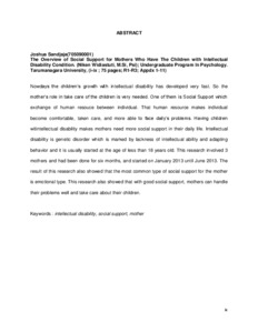 Sandjaja, Joshua (2013) Gambaran Fdukungan Sosial Pada Ibu Yang Memiliki Anak Dengan Kondisi Intellectual Disability. Skripsi thesis, Universitas Tarumanagara.