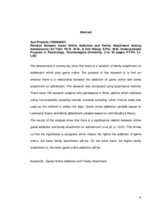 Priyanto, Ayu (2013) Hubungan Antara Adiksi Game Online Dengan Kelekatan Keluarga Pada Remaja. Skripsi thesis, Universitas Tarumanagara.