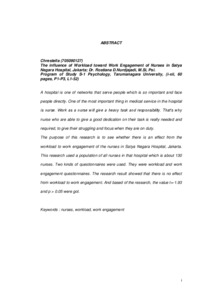 The purpose of this research is to see whether there is an effect from the workload to work engagement of the nurses in Satya Negara Hospital, Jakarta. This research used a population of all nurses in that hospital which is about 130 nurses. Two kinds of questionnaires were used. They were workload and work engagement questionnaires. The research result showed that there is no effect from workload to work engagement. And based of the research, the value t=-1.93 and p > 0.05 were got.