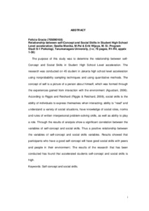 Gracia, Felicia (2013) Hubungan Antara Konsep Diri Dengan Keterampilan Sosial Pada Siswa Akselerasi Tingkat SMA. Skripsi thesis, Universitas Tarumanagara.