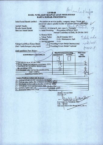 Lerbin R. Aritonang, review and Paula Tjatoewidya A, review and Ida Puspitowati, review (2013) Review 20 :Lerbin R. Aritonang, Paula Tjatoewidya A., Ida Puspitowati. Review : " Perception On Service Quality, Company Image, Trust, And Percei- ved Value To Predict Loyalty Of Cellular Network Subcribers ", 01 (20). pp. 1-12. ISSN 2309-379X
