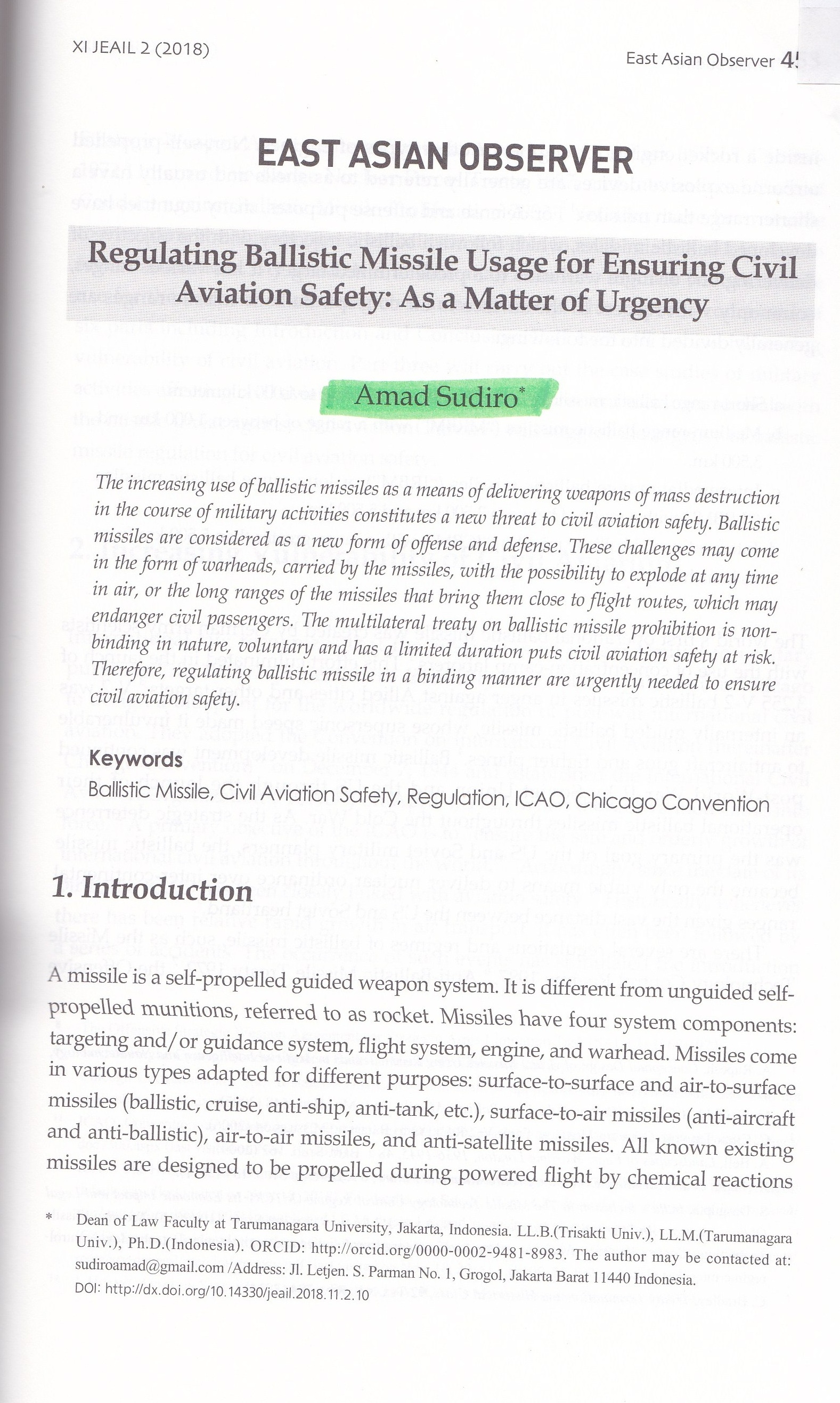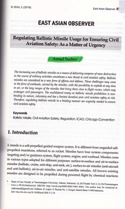 Sudiro, Amad Regulating Ballistic Missile Usage for Ensuring Civil Aviation Safety: As a Matter of Urgency. Journal Of East and East Asia and International Law.