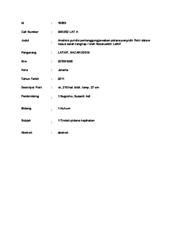 NAZARUDDIN, LATHIF (2011) Analisis yuridis pertanggungjawaban pidana penyidik Polri dalam kasus salah tangkap / oleh Nazaruddin Lathif. Skripsi thesis, UNIVERSITAS TARUMANAGARA.
