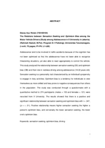 Wulan, Deasy Ayu (2014) Hubungan Antara Sensation Seeking Dengan Optimism Bias Pada Pengemudi Kendaraan Bermotor (Studi {ada Remaja Akhir di Perguruan Tinggi X di Jakarta). Skripsi thesis, Universitas Tarumanagara.
