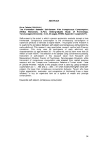 Self-esteem is the extent to which a person appreciate, evaluate, accept or love him/herself. Conspicuous consumption is the unnecessary consumption of expensive products or services to signal wealth. The purpose of this research is to examine the correlation between self-esteem and conspicuous consumption by early adulthood. This research uses quantitative research method with Pearson correlation. This study uses 88 participants of early adulthood with charatercteristic (a) age between 20 – 40 years old, and (b) earn more than 25 million idr each month. The selection of the sample using convenience sampling. Instrument of self-esteem in this research taken from Research and Measurement Division, Faculty of Psychology, Tarumanagara University, while instrument of conspicuous consumption was adapted from related previous research with title “Conspicuous Consumption Patterns of Turkish Youth : Case of Cellular Phones”. Results of the analysis which is done by using correlation examination are r = -.459 and p = .000 < .01 which means the higher one’s self-esteem, the lower their conspicuous consumption behavior. Person who have higher appreciation, evaluation, and acceptance of him/herself have a lower tendency to buy an expensive item as a symbol of wealth and prestige enhancement.