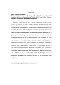 Disclosure of information is done in social media about yourself, such as gender, age, address, occupation, and the problem of what is happening can be included as part of self-disclosure. Self disclosure committed by juveniles can be to update the status and upload photos, then the appearance becomes an important aspect of the inevitable of the development of social media. The way a person perceive the body shape you have, the ideal concept that suits the individual's perception of the so-called body image. The purpose of this study was to determine the relationship between body image and self-disclosure in adolescent social media users. The study involved 302 participants from one high school in South Tangerang and one university in West Jakarta by using a convenience sampling technique. The results showed that there is a negative relationship between body image and the appearance dimensional orientation with self-disclosure with r = -0.132 and p = 0.022. So the higher-dimensional body image and appearance orientation, the lower the self-disclosure of social media users.