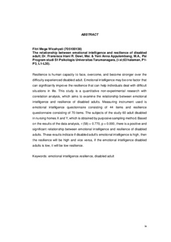 Wicahyati, Fitri Mega (2015) Hubungan Antara Kecerdasan Emosional Dengan Resiliensi Pada Dewasa Tuna Daksa. Skripsi thesis, Universitas Tarumanagara.