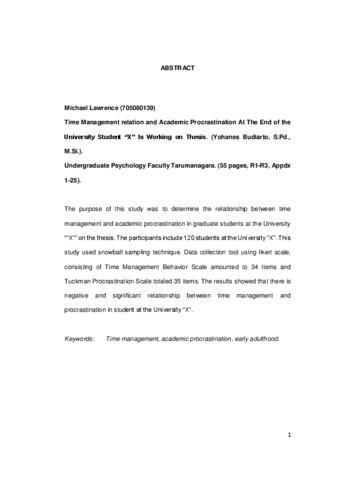 Lawrence, Michael (2013) Hubungan Manajemen Waktu dan Proakrastinasi Akademik pada Mahasiswa Tingkat Akhir di Universitas X yang sedang Mengerjakan Skripsi. Skripsi thesis, universitas Tarumanagara.