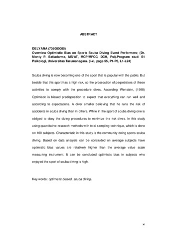 Delyana, Delyana (2016) Gambaran optimistic bias pada pelaku kegiatan olahraga scuba diving. Skripsi thesis, universitas Tarumanagara.