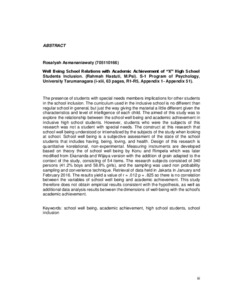 Asmananiawaty, Rosalyah (2016) Hubungan antara school well-being dengan prestasi akademik pada siswa SMA Inklusi negeri “X”. Skripsi thesis, Universitas Tarumanagara.