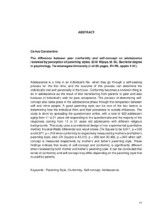 Constantine, Carlos (2016) Perbedaan konsep diri dan konformitas teman sebaya pada remaja ditinjau dari persepsi pola asuh orangtua. Skripsi thesis, Universitas Tarumanagara.
