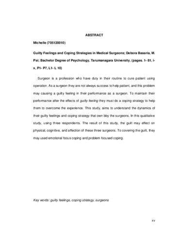 Michelle, Michelle (2016) Gambaran guilty feeling dan coping strategy pada individu yang berprofesi sebagai dokter bedah. Skripsi thesis, Universitas Tarumanagara.