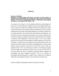 Montena, Montena (2017) Religiositas dan psychological well being: studi analisis jalur pada kristiani dewasa awal yang melakukan dan tidak melakukan praise and worship. Skripsi thesis, Universitas Tarumanagara.