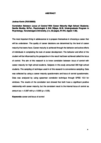 Kevin, Joshua (2017) Hubungan antara locus of control dengan kematangan karir siswa SMA. Skripsi thesis, Universitas Tarumanagara.
