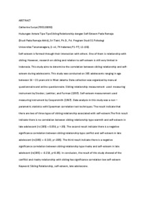 Indonesia. This study aims to determine the correlation between sibling relationship and selfesteem during adolescents. This study was conducted on 385 adolescents ranging in age