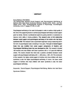 M, Kezia (2018) Hubungan antara Social Support dengan Psychological Well-Being pada Ibu yang Memiliki Anak dengan Down Syndrome. Skripsi thesis, Universitas Tarumanagara.