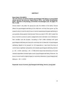 Halim, Novia (2018) Peran Locus of Control terhadap Psychological Well-Being pada Dewasa Awal yang Orangtuanya Bercerai. Skripsi thesis, Universitas Tarumanagara.