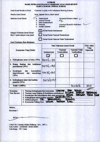 Keni Keni, Review and Hasnah Haron, Review and Ishak, Review Review B8. Keni, Hasnah Haron, Ishak Ismail. Review : Customer Loyalty in the Indonesian Banking Industry, 21 (4). pp. 838-842. ISSN 1307-1637
