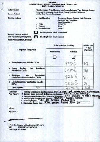 Mei Ie, Reviewer and Hetty Karunia Tunjungsari, Reviewer (2015) Review B24. Mei Ie, Hetty Karunia Tunjungsari. Review. " Lomba Menulis Artikel Bertema Membangun Indonesia Yang Tangguh Dengan Semangat Kewirausahan Untuk Siswa Tingkat SMU/SMK Di Jakarta “, 2 (1). pp. 68-76. ISSN 2356-3176