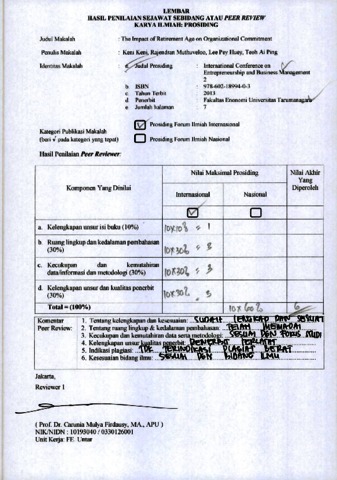 Keni Keni, Review and Rajendran Muthuveloo, Review and Lee Pey Huey, Review and Teoh Ai Ping, Review (2013) Review B19. Keni Keni, Rajendran Muthuveloo, Lee Pey Huey, Teoh Ai Ping. Review The Impact of Retirement Age on Organizational Commitment. ISSN 978-602-18994-0-3