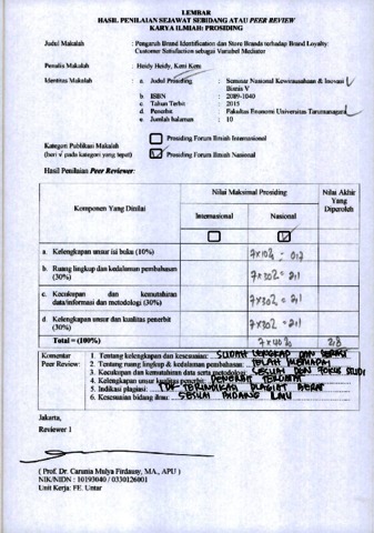 Heidy Heidy, Review and Keni Keni, Review (2014) Review B24. Heidy Heidy, Keni Keni. Review .Pengaruh Brand Identification dan Store Brands terhadap Brand Loyalty: Customer Satisfaction sebagai Variabel Mediator. ISSN 2089-1040