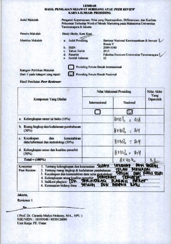Heidy Heidy, Review and Keni Keni, Review (2014) Perview B25. Heidy Heidy, Keni Keni. Review .Pengaruh Kepercayaan, Nilai yang Dipersepsikan, Differensiasi, dan Kualitas Pelayanan Terhadap Word of Mouth Marketing pada Mahasiswa Universitas Tarumanagara di Jakarta. ISSN 2089-1040
