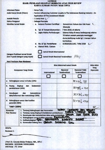 Keni Keni, Review Review B34. Keni. Review. Factors Influencing Customer Loyalty In The Indonesian Banking Industry: An Application Of The Investment Model. ISSN 000107539