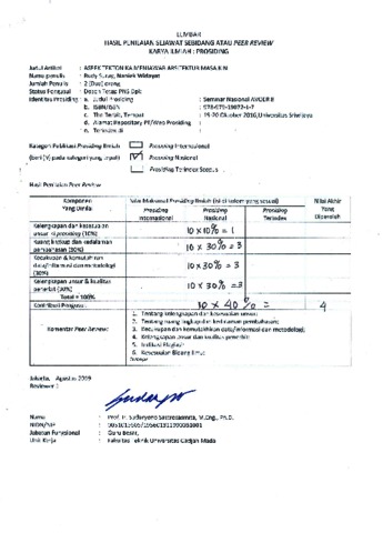Surya, Rudy and Priyomarsono, Naniek Widayati Peer Review "Aspek Tektonika Menjawab Arsitektur Masa Kini". Peer Review.
