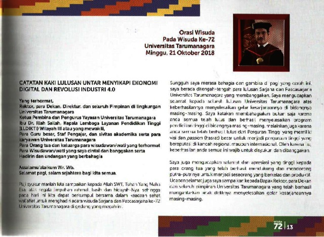 Wisuda, Untar (2018) Orasi Wisuda Untar ke 72. Laporan Akademik Wisuda Untar ke 72.