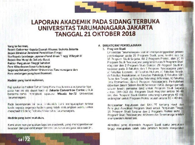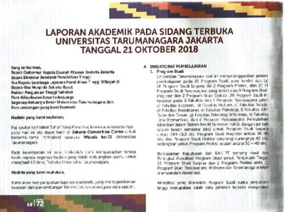 Wisuda, Untar (2018) Laporan Akademik Wisuda Untar ke 72. Universitas Tarumanagara.