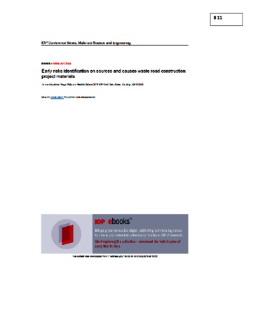 Mega, Waty (2019) Early risks identification on sources and causes waste road construction project materials. Univesitas Tarumanagara.