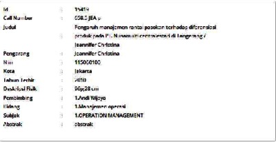 Christina, Jeannifer (2010) Pengaruh manajemen rantai pasokan terhadap diferensiasi produk pada PT. Nusamulti centralestari di Tangerang. Skripsi thesis, Universitas Tarumanagara.