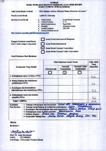 Lerbin R. Aritonang, review (2006) Reviewer 09, Lerbin R. Aritonang. " DEA Sebagai Analisis Alternatif Dalam Penelitian Akuntansi ", X (9). pp. 283-295. ISSN 1410-3591