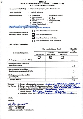 Lerbin R. Aritonang, review (2007) Reviewer 10, Lerbin R. Aritonang. " Kesetiaan, Kepercayaan, Nilai, Identitas Sosial ", XI (10). pp. 21-38. ISSN 1410-3583