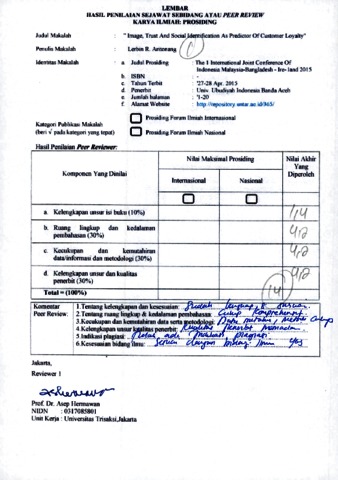Lerbin R. Aritonang, review Reviewer Prosiding B22, Lerbin R. Aritonang. ” Image, Trust And Social Identification As Predictor Of Customer Loyalty" (22). pp. 1-20.